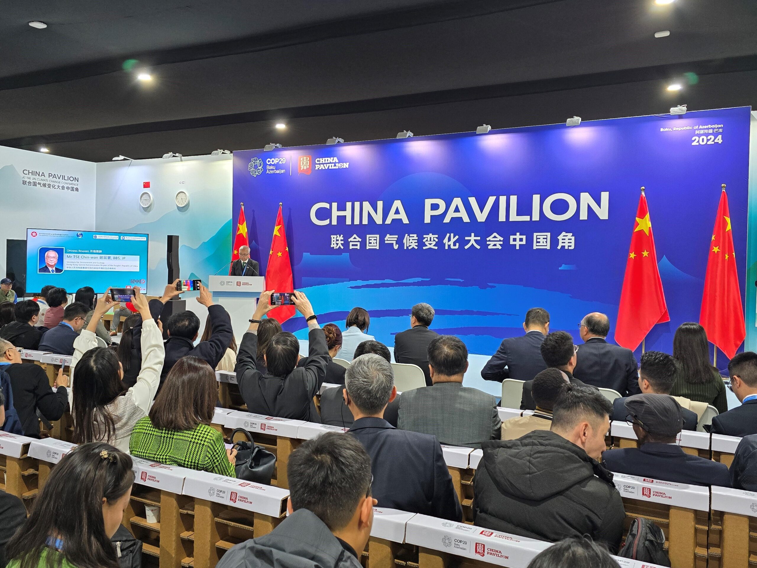 環境及生態局局長謝展寰昨日(阿塞拜疆時間十一月十三日)繼續在阿塞拜疆出席《聯合國氣候變化框架公約》締約方大會第29屆會議(氣候變化大會),並在中國角邊會活動發表演說。