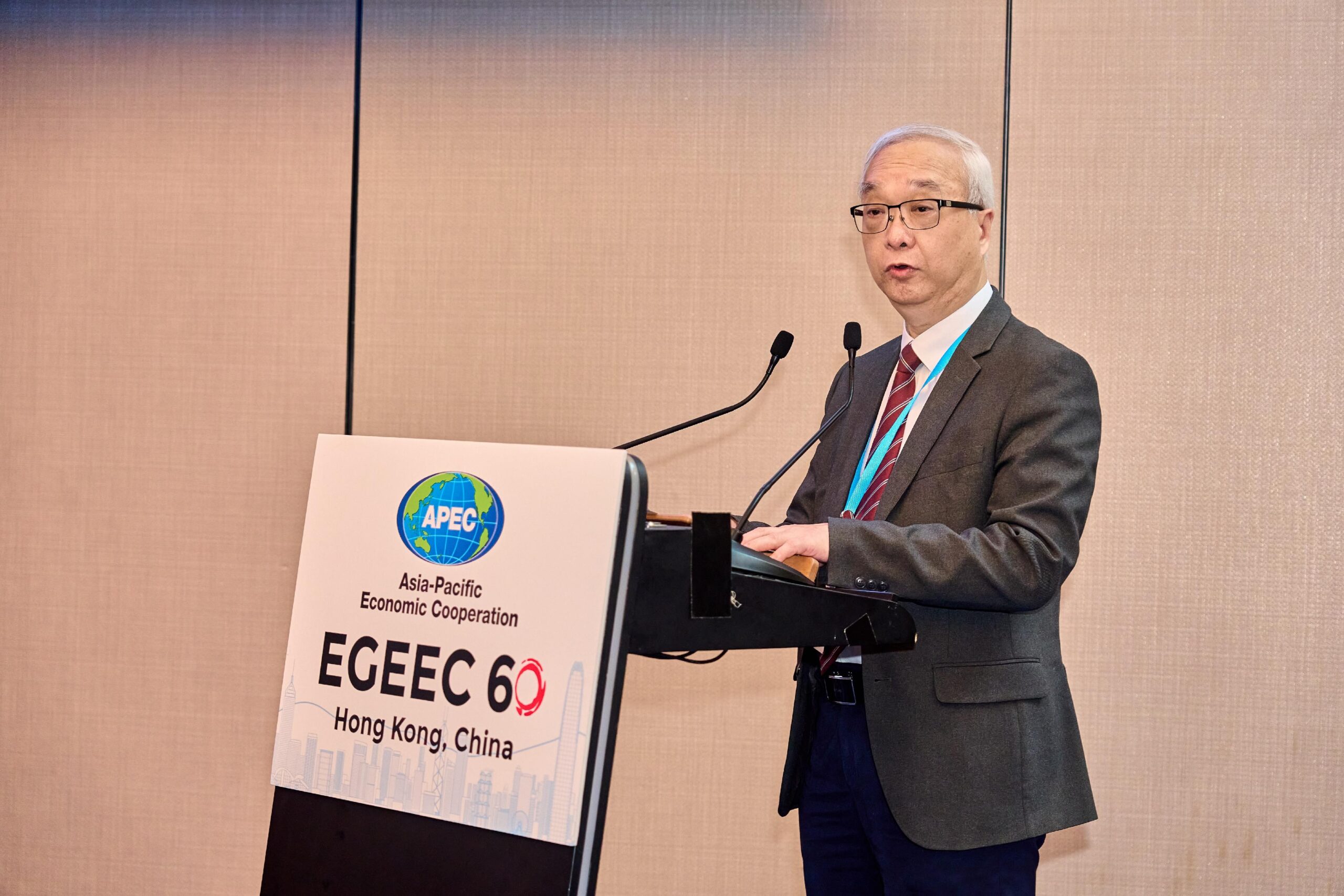 亞太經合組織能源效益及節能專家小組主席暨機電工程署首席能源效益顧問黃奕進今日在會議上致開幕辭。他表示按目前進展,亞太經合組織可望在二○三四年實現其地區性目標,即把能源強度從二○○五年的水平減少45%,較原定目標二○三五年提前實現。他感謝亞太經合組織各成員經濟體在過去為面對氣候變化持續付出努力,又強調各成員經濟體仍需保持緊密合作,以應對氣候變化帶來的挑戰。
