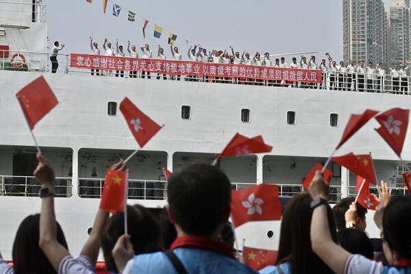 國家第一艘自主建造的極地科學考察破冰船「雪龍2」號結束五日訪港活動,「雪龍2」號訪港籌備委員會在尖沙咀海運碼頭舉行歡送儀式。