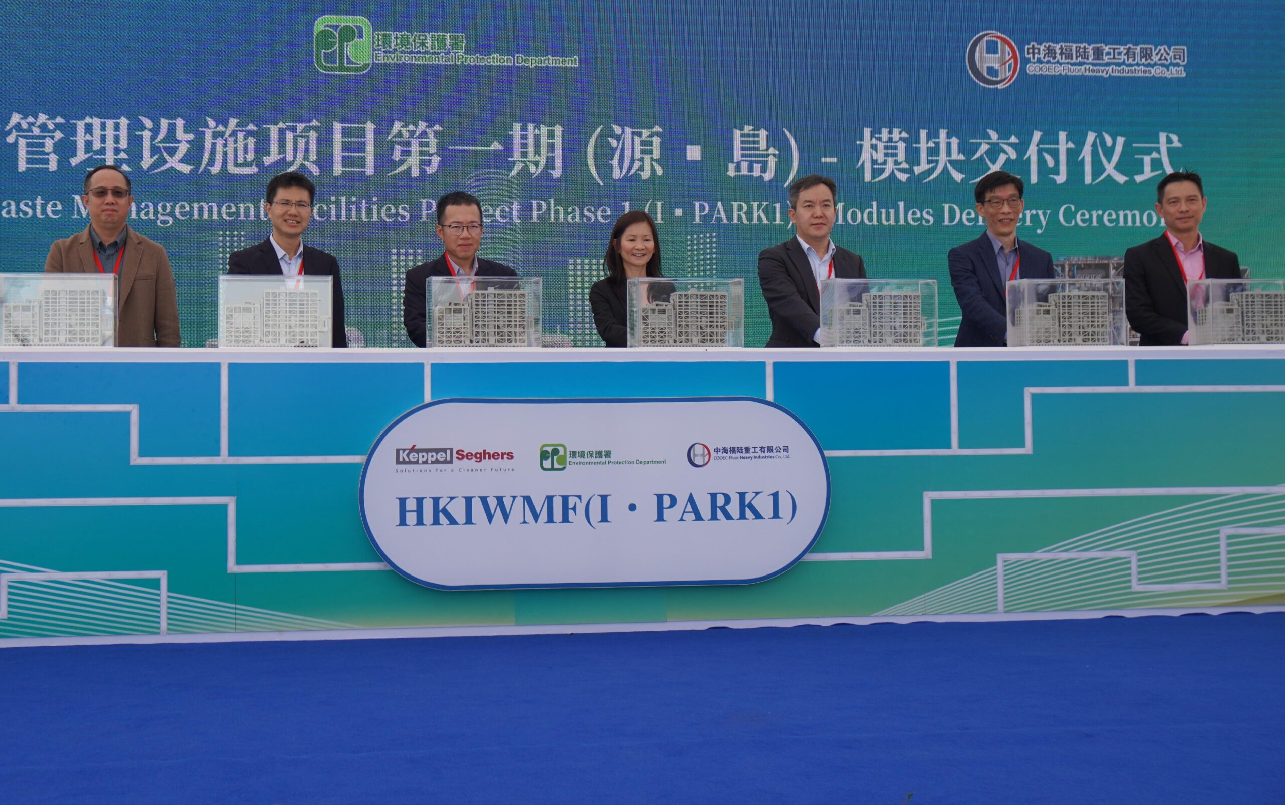 本港首座處理都市固體廢物的轉廢為能設施(I·PARK1)的預製組件製造工程順利完成。環境保護署(環保署)副署長胡偉文今日(一月十九日)在位於珠海的廠房出席巨型機電設備預製組件的竣工交付儀式。