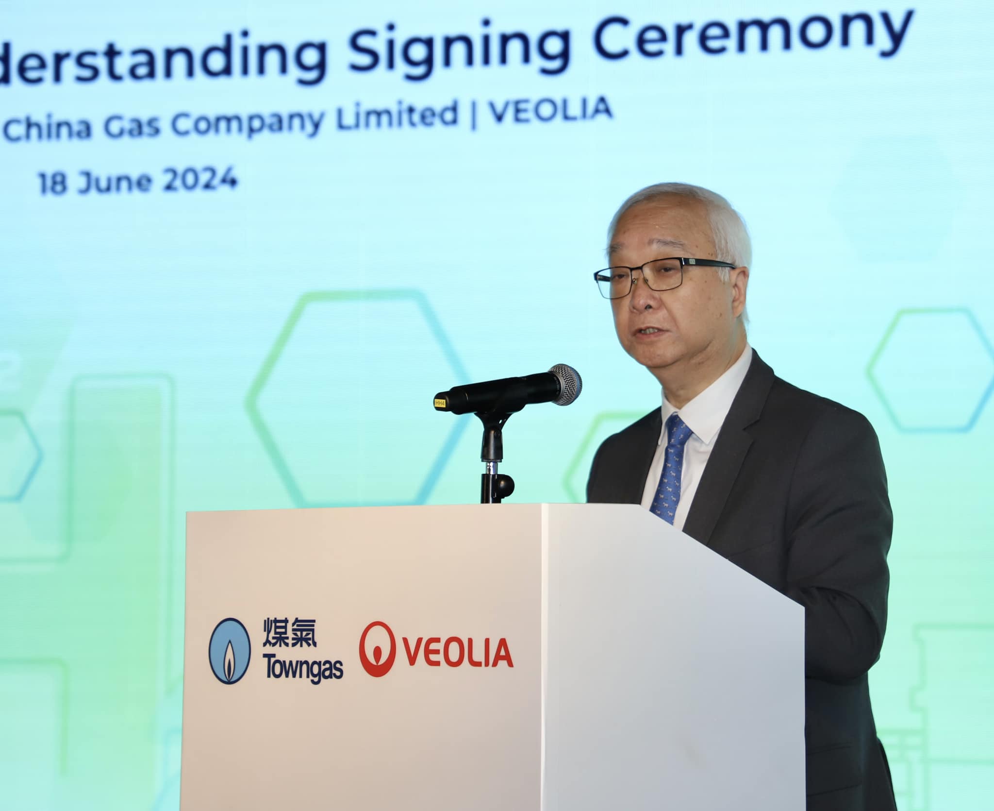 在政府和業界的共同不懈努力下,香港能源低碳發展走出新方向的重要一步。今日,環境及生態局局長謝展寰見證威立雅香港與香港中華煤氣有限公司在新界東南堆填區擴建部分進行利用堆填氣體製氫的試驗項目的簽署儀式。