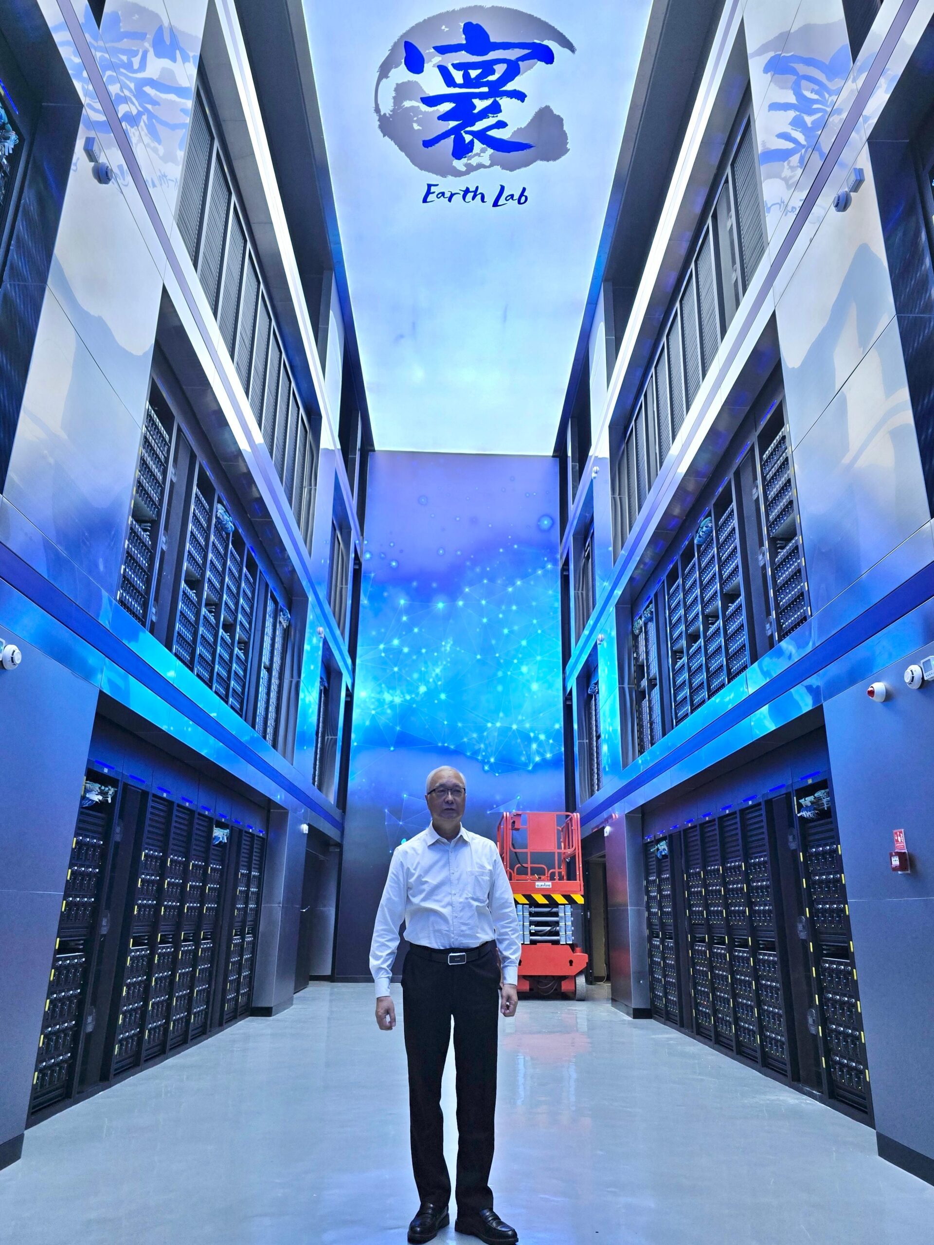 環境及生態局局長謝展寰今日(七月十二日)在北京參觀中國科學院的地球系統數值模擬裝置,裝置的名字為「寰」。