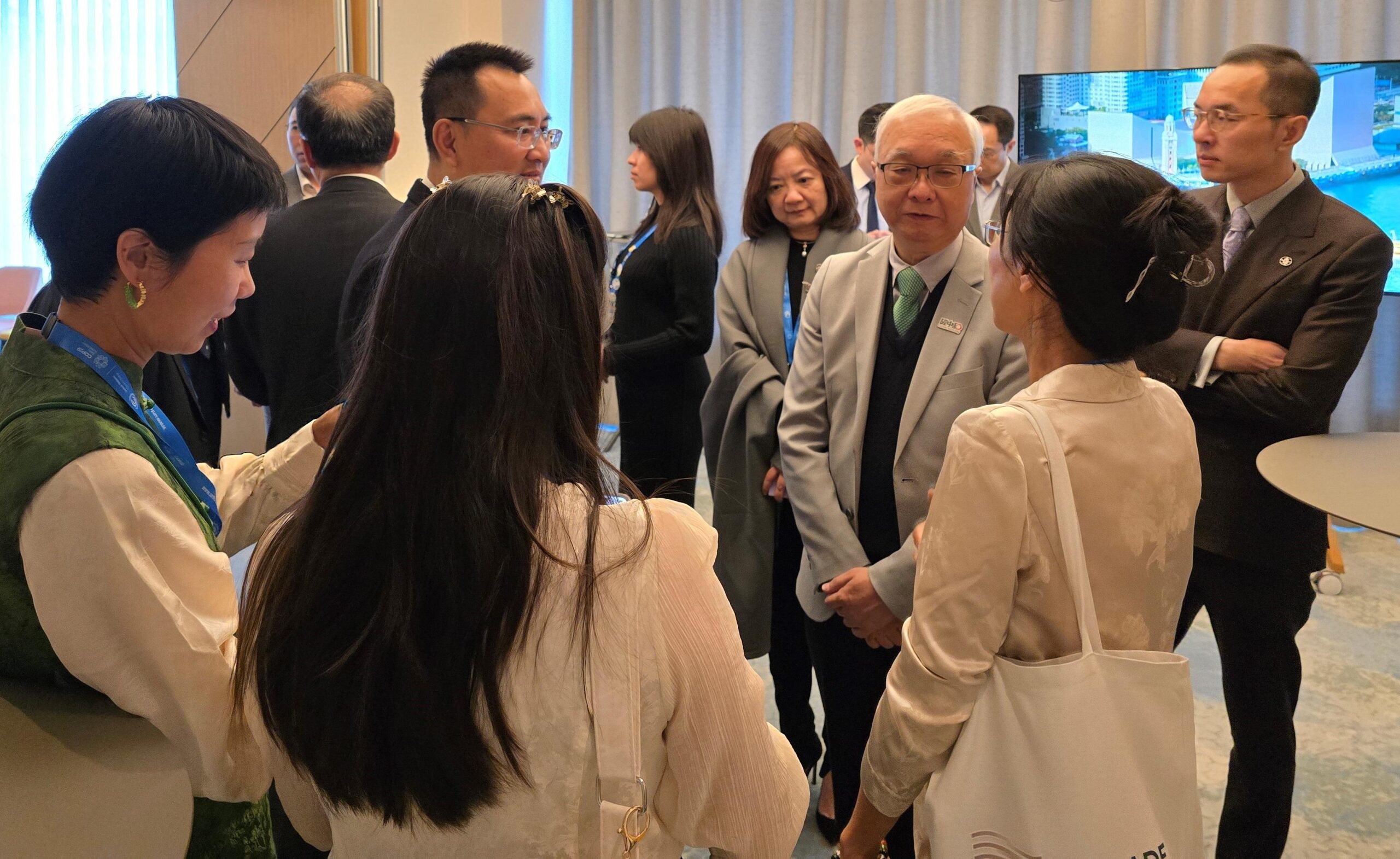 謝展寰昨日亦與參加氣候變化大會的香港組織、業界人士及青年茶聚交流。他於茶聚中表示,很高興香港今次參與氣候變化大會的組織和人數比去年倍增。他認為,碳中和是全球共同目標,未來全世界都必須要面對低碳綠色轉型。香港有祖國龐大綠色低碳技術和產品的支援,聯通世界,更有着國際金融中心,高質專業服務及法治系統方面的優勢,不同界別和行業可以和政府加強協作,一同抓緊低碳綠色轉型帶來的龐大機遇。