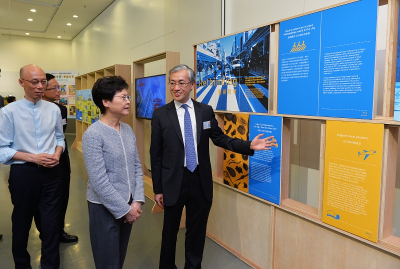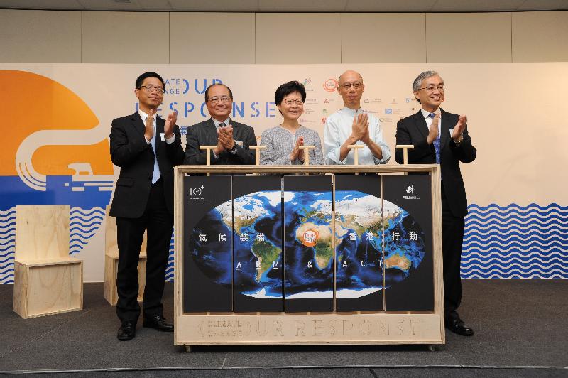 「科學為民」服務巡禮「回應.氣候展」今日(六月二日)開幕。政務司司長林鄭月娥、教育局局長吳克儉、環境局局長黃錦星、商務及經濟發展局副局長梁敬國和香港天文台台長岑智明主持開幕儀式,多個政府部門及協作機構代表亦獲邀出席。