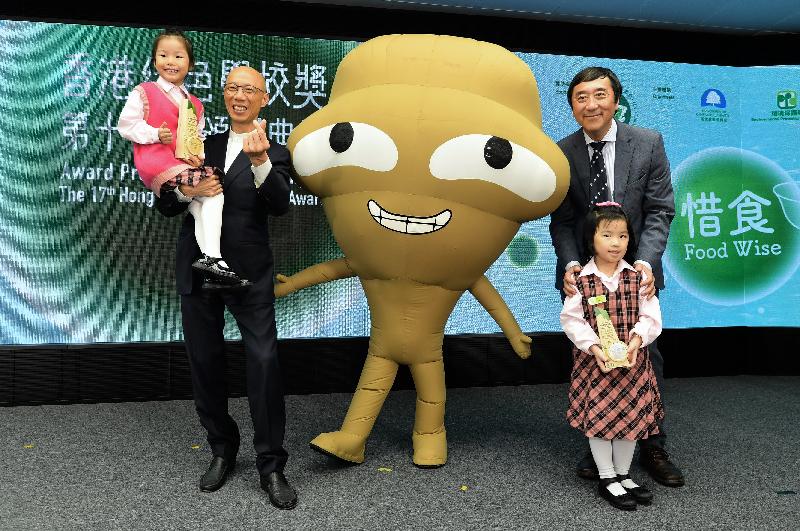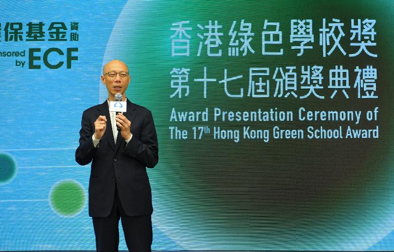 「第十七屆香港綠色學校獎」頒獎典禮今日於生產力大樓舉行,除黃錦星和沈祖堯外,其他主禮嘉賓為署理教育局副秘書長區蘊詩、環運會教育工作小組召集人陳美娟及環境保護署副署長區偉光。另外,協辦機構香港教育大學、香港生產力促進局及職業訓練局的代表亦有出席。